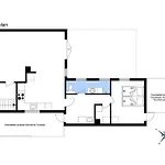 Zur Ausstattung des Badezimmers gehören auch eine Dusche und eine Waschmaschine.